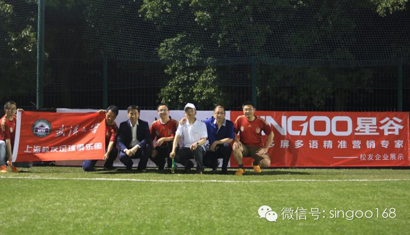 与武汉大学上海校友足球俱乐部球员、上海校友会胡光副理事长、创业分会陈景昭联席会长合影: