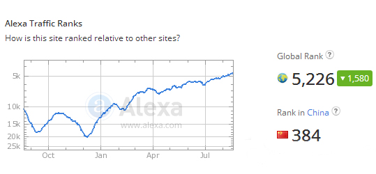 看出来 CL 1024 论坛流量有多NB了吗?另外,Alexa 也直接给出了分别位于世界和中国的网站流量排名。