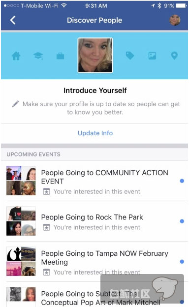 为了帮助用户之间建立新的联系,Facebook计划在移动端新上线“Discover People”功能。这个功能对用户开放后,用户可以对个人资料进行更新,在活动列表中查询将和自己参加同一活动的陌生用户的信息,并可以搜索同城或有相同雇主的陌生人。