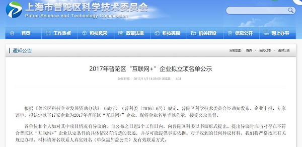 近日获悉这个喜讯,小谷内心异常激动,这应该是今年继荣获“上海高新技术企业”、“经信委电子商务双推服务平台”、“上海科技型中小企业创新资金支持项目”等荣誉后,星谷再次荣膺政府垂爱,入选为“2017年普陀区互联网+企业”。
