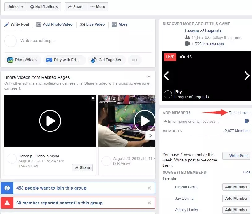 按照一般的方法,比如这是我的一个群组,当你点击 Embed Invite之后,如下图箭头所示: