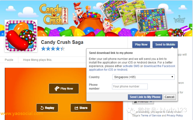 如果你的APP是移动端APP, 那么必须使用SDK并使用Facebook 的一键登录, 才会出现在Facebook的 App Center, 当用户访问App Center并点击send to mobile时,facebook会发送含有下载地址的短信到用户手机。