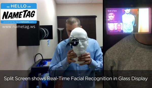 这东西叫NameTag,带着它出去,可以通过面部识别搜索出路人的联系方式、社交媒体档案、兴趣爱好、情感状况等等所有能在社交网络上搜到的信息。如果路人看到你带这个眼镜,很可能会揍你。