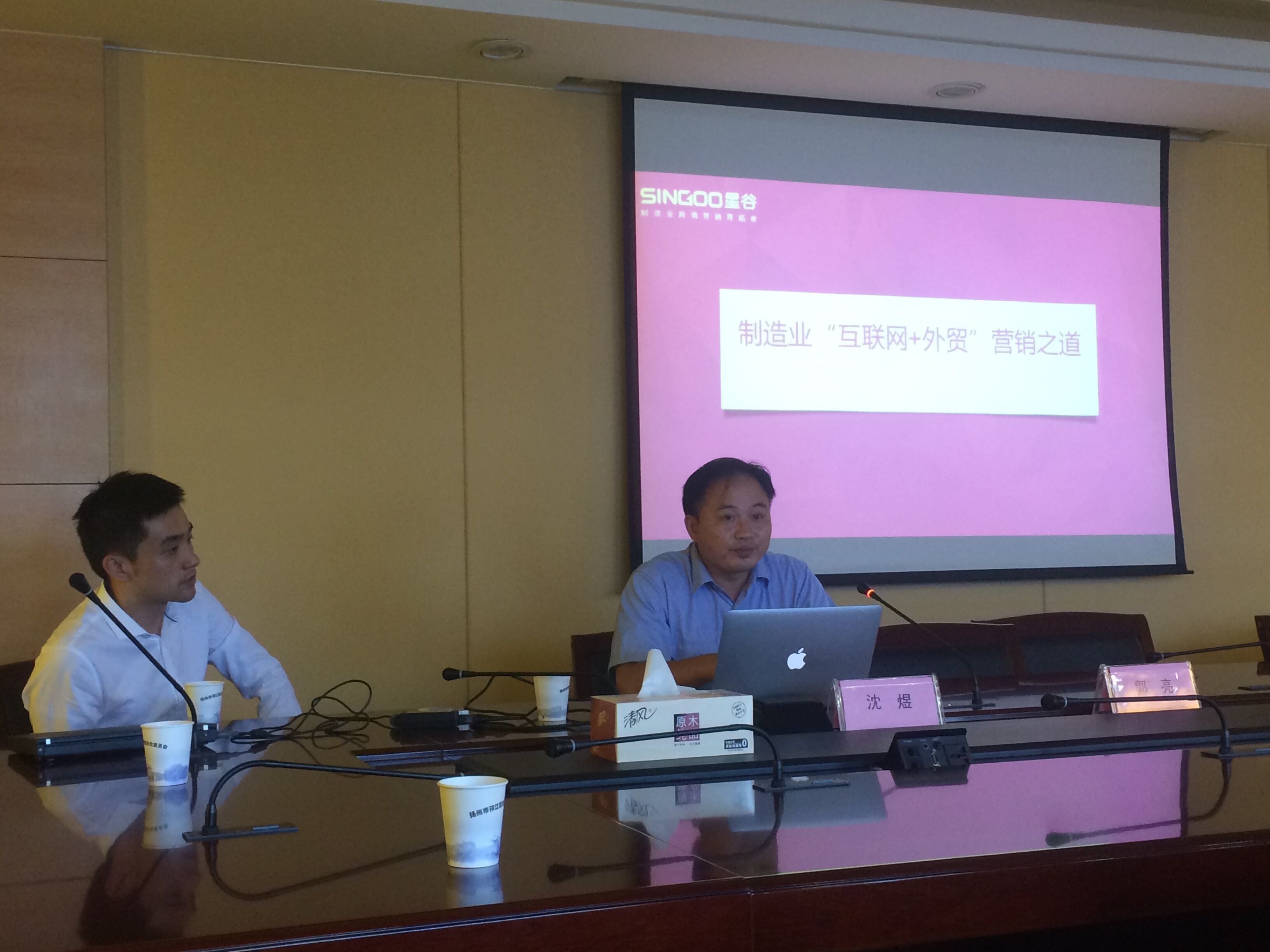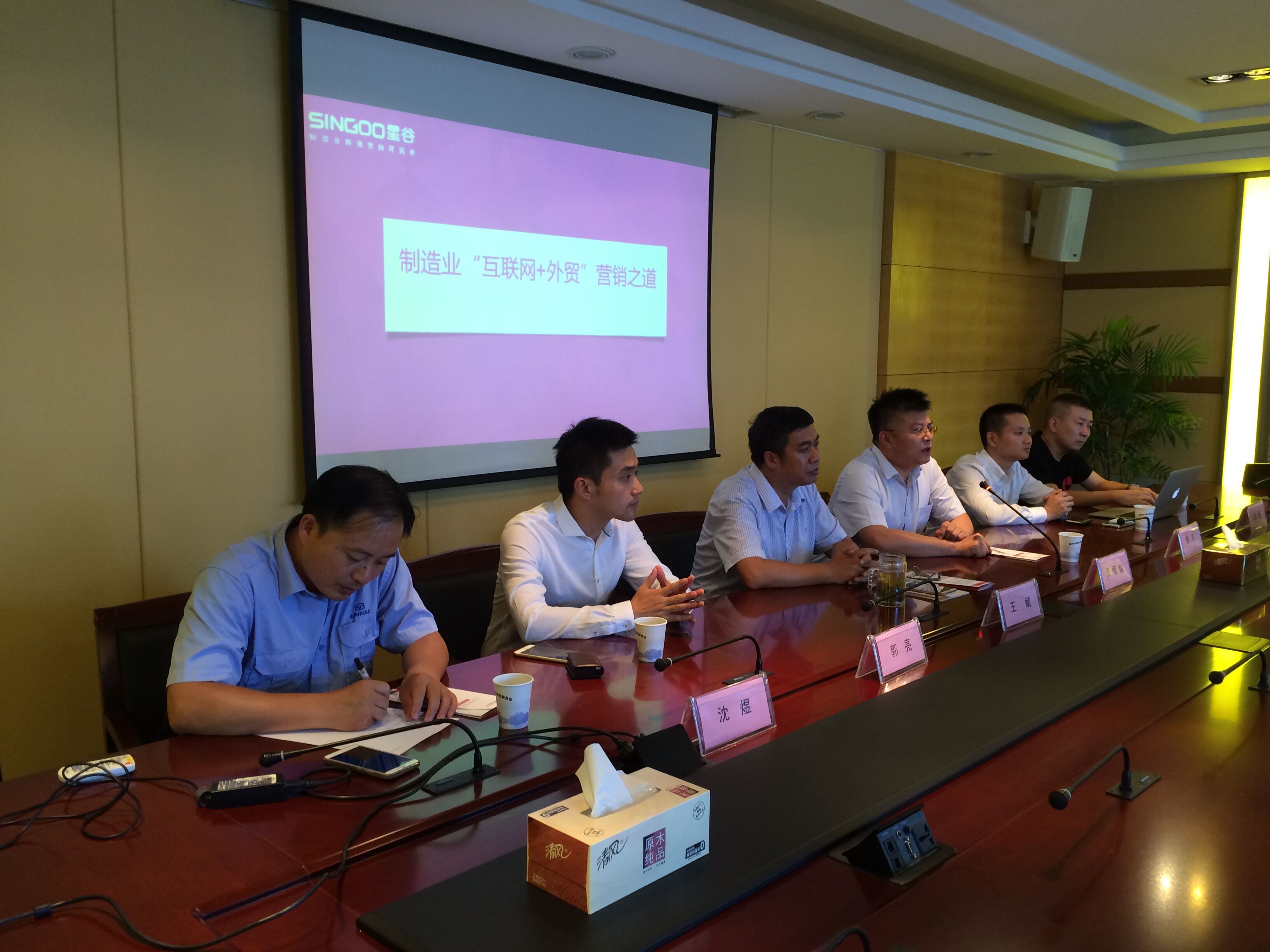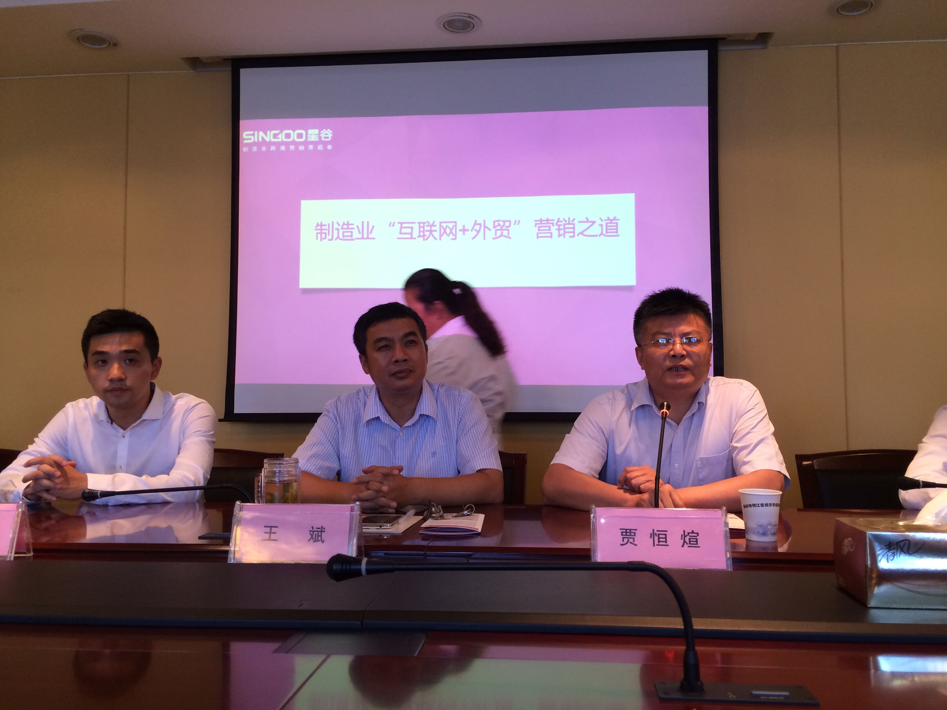 9月7日,为了鼓励传统企业抓住机遇,加快触网,实现外贸行业优进优出的重大战略部署,上海星谷信息科技有限公司与江苏扬州邗江区经信委和邗江区商务局联合举办了“互联网+时代企业海外营销之道——上海星谷跨境品牌营销整体解决方案”。邗江区经信委主任贾恒煊、商务局副局长王斌出席座谈会。江苏林海动力机械集团公司信息化主管沈煜,也在百忙之中抽空来到现场做互联网营销经验的分享。