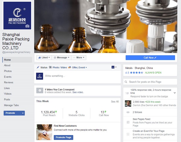 上海派协包装机械有限公司是一家主要从事全自动灌装包装生产线研发、生产与销售的年轻灌装机械公司,该公司产品远销美国、德国、法国、意大利、非洲、中东、南亚等众多海外国家及地区。作为灌装机械行业内一家相对年轻的公司而言,能做到这样的效果已经相当不错。那么,这样一篇单次操作费用低至1厘钱的低成本Facebook帖文是如何造就的?派协的Facebook主页怎么将效果做的如此之好?
