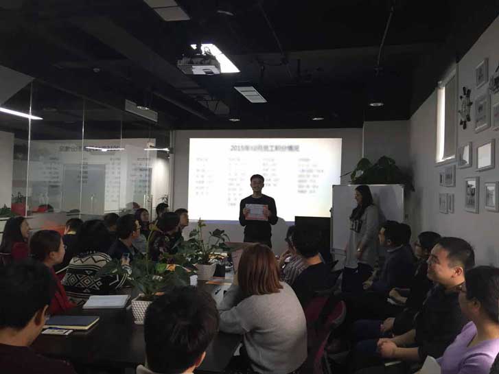 会上总结上个月、上季度、以及整个2015年公司的情况。与2014年相比,2015年,星谷业绩几乎翻了一倍,星谷家族新增了20名左右的新成员。