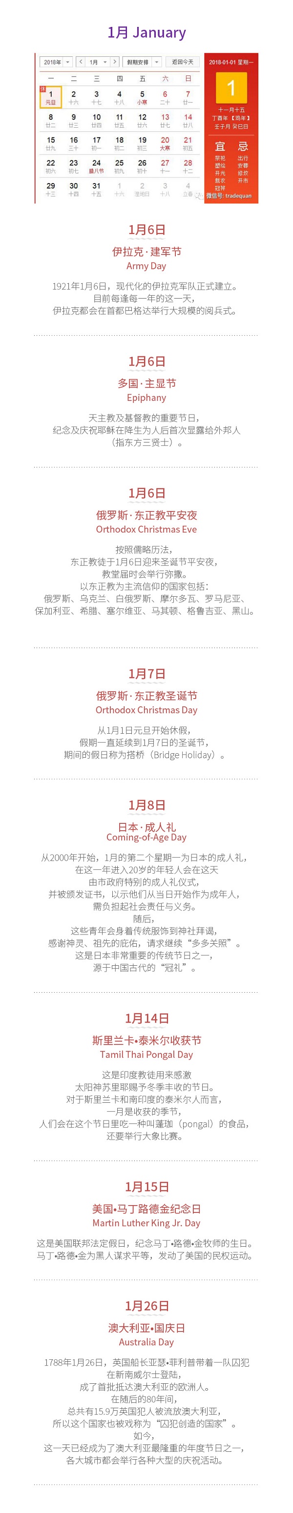 超实用2018年外贸人日历,开工必备!(赶紧收藏)