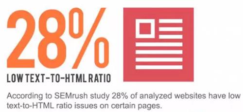 研究数据显示:28%的网站在一定页面上存在可读文本在HTML代码中占比低的问题。