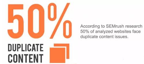 50%参与调查的网站都有内容重复的问题。(Google对重复内容的定义是:重复内容一般是指在不同域名间存在大量的相同或相似的内容。)虽然目前谷歌没有针对重复内容进行惩罚,但这样的网站搜索引擎不知你想将哪一个页面作为你的着陆页展示在搜索结果中,因而不被Google所青睐。