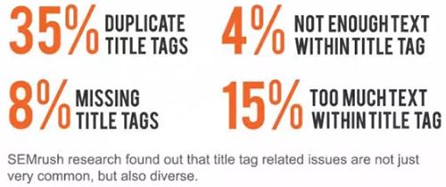 研究数据显示:35%的网站存在Title标签重复问题,15%的网站有Title标签过长的现象,8%的网站缺失Title标签,4%的网站Title标签太短。