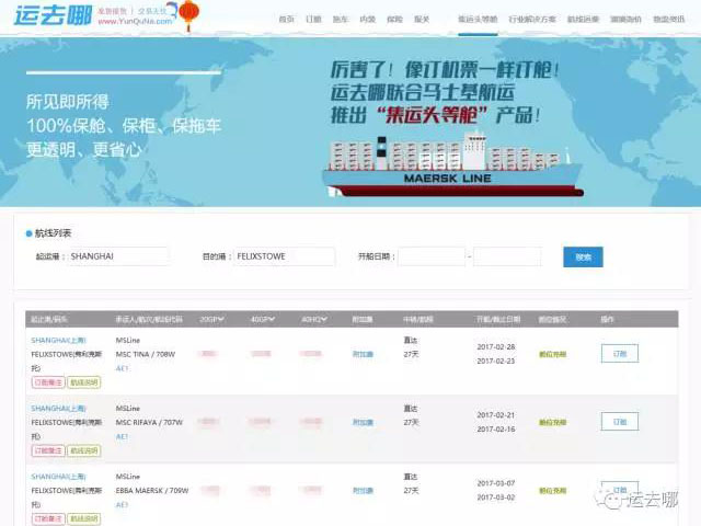 新鲜出炉:你可以像订机票一样在线订舱啦!恭喜“运去哪”!